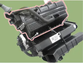 Befestigungsschrauben lösen und unteres Gehäuse (A) der Heizungseinheit ausbauen.