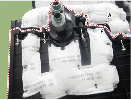 Reparaturverfahren AUS- UND EINBAU 1. Batteriemassekabel abklemmen. 2. Die Heizungsgruppe entfernen.