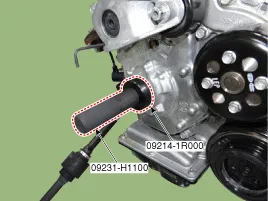 Neue vordere Öldichtung mit Spezialwerkzeug (09214-1R100, 09231-H1100) anbringen und Motoröl auf die Kante der neuen Öldichtung auftragen.