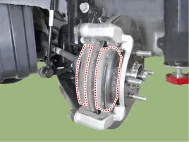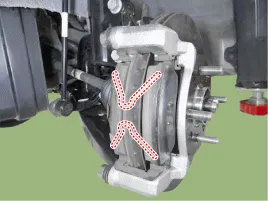 Wenn der Verschleiß den Grenzwert überschreitet, die Baugruppe aus Scheibe und Belag links und rechts am Fahrzeug auswechseln. |