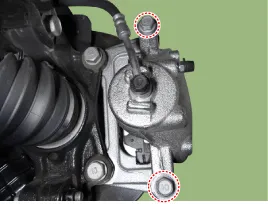 Bremssattelschrauben lösen, dann Bremssattelträger ausbauen.
