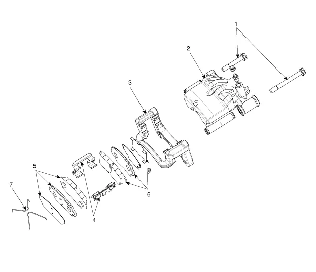 | 1. Führungsschraube 2. Sattelkörper 3. Bremssattelträger 4. Bremsbacke |