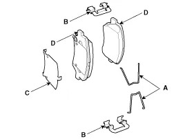 Bauteile und bauteile-Übersicht BAUTEILE-ÜBERSICHT 1. Rückstellfeder 2. Bremsbelageinheit [AUSSEN] 3. Bremsbelageinheit [IN] 4.