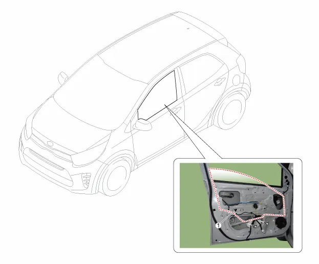 Bauteile und bauteile-Übersicht BAUTEILE-ÜBERSICHT 1. Vordertürfenster Reparaturverfahren AUS- UND EINBAU Handschuhe anziehen, um die Hände zu schützen.