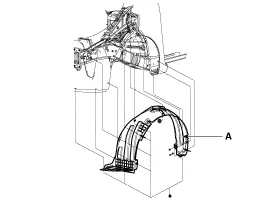 Befestigungsclips und -muttern lösen, dann vorderen Radkasten (A) entfernen.