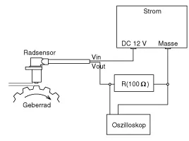 Die Ausgangsspannung zwischen der Klemme des Raddrehzahlsensors und Karosseriemasse messen.