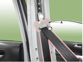 Befestigungsschrauben lösen, dann Vordersitz-Gurtaufroller (A) ausbauen.