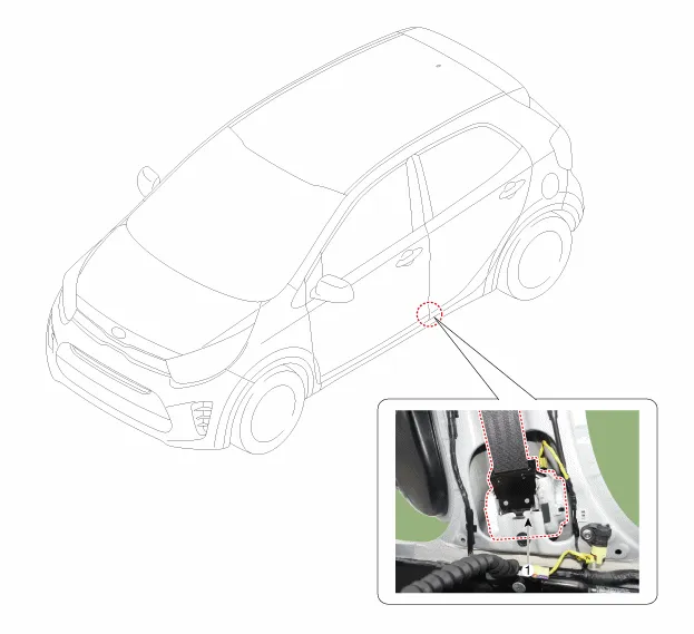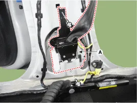 Obere B-Säulenverkleidung abnehmen. (Siehe Seite BD-60) (Siehe Innenverkleidung - "B-Säulenverkleidung") |