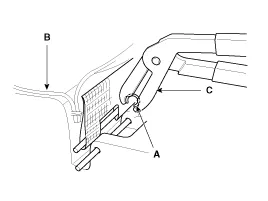Klettband (A) und Ringclips (B) abnehmen und dann Vordersitzlehnenbezug (C) entfernen.