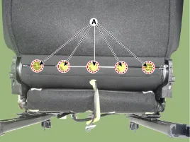 Vordersitzlehnenbezug (A) vom Vordersitzrahmen entfernen.