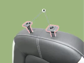 Innenseite des Vordersitzlehnenbezugs nach außen kehren. Dann den unteren Teil der Führungen an beiden Seiten zusammendrücken und Kopfstützenführungen (A) herausziehen und entnehmen.