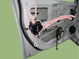 Reparaturverfahren AUS- UND EINBAU 1. Vordere Türverkleidung abbauen. (Siehe Vordertür - "Vordertürverkleidung") 2.