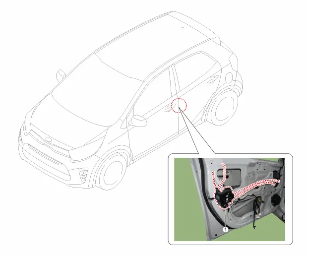 Bauteile und bauteile-Übersicht BAUTEILE-ÜBERSICHT 1. Vordertüraußengriff Reparaturverfahren AUS- UND EINBAU Handschuhe anziehen, um die Hände zu schützen.