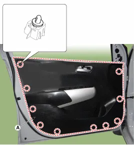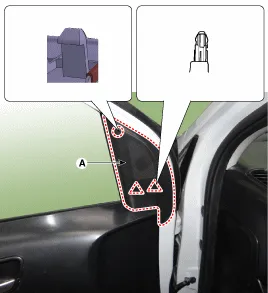Abdeckung (A) des Vordertür-Dreieckfensters mit einem Ausbauwerkzeug entfernen.