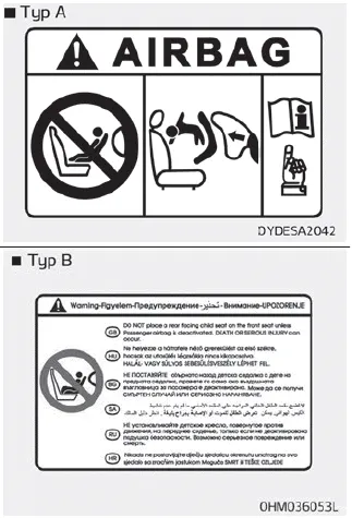 Platzieren Sie auch kein nach vorn gerichtetes Kinderrückhaltesystem auf dem vorderen Beifahrersitz. Wenn der Beifahrer-Frontairbag ausgelöst wird, würde er dem Kind schwere oder tödliche Verletzungen zufügen.