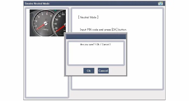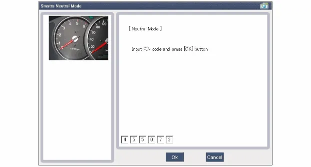(Siehe Vorgehensweise zur Einstellung von Schlüssel und PIN-Code des PCM (ECM) in "Neutral-Status" mit Hilfe eines Scanners. Wenn 3-mal nacheinander oder kurzzeitig unterbrochen falsche fahrzeugspezifischen Daten an die SMARTRA-Einheit übertragen werden, blockiert die SMARTRA-Einheit die Anfrage nach Aktivierung des Neutralmodus für eine Stunde. Diese Zeitspanne kann weder durch Abklemmen der Batterie noch durch eine andere Manipulation verkürzt werden. Nach dem Wiederanschließen der Batterie beginnt der Zeitgeber die Stunde von Neuem.