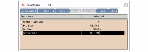 Zündschlüssel (unabhängig vom Schlüsselstatus) ist eingesteckt und Zündung eingeschaltet. Nach Empfang des korrekten Fahrzeug-Passworts vom GST, kann die SMARTRA-Einheit neutralisiert werden. Die Neutralisierung der SMARTRA-Einheit ist möglich, wenn der DPN und der vom GST eingegebene Wert übereinstimmen.