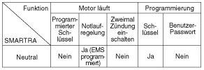 Wenn der SMARTRA-Status neutral ist, bleibt das EMS verriegelt. Der Motor kann auch durch "doppelte Zündung" nicht gestartet werden.