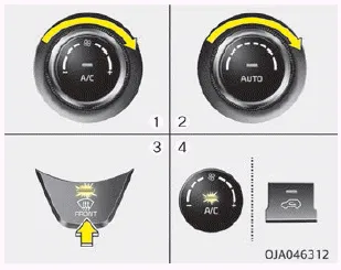 1. Stellen Sie die gewünschte Gebläsedrehzahl ein. 2. Stellen Sie die gewünschte Temperatur ein. 3. Drücken Sie die Taste für die Scheibenheizung ( ).
