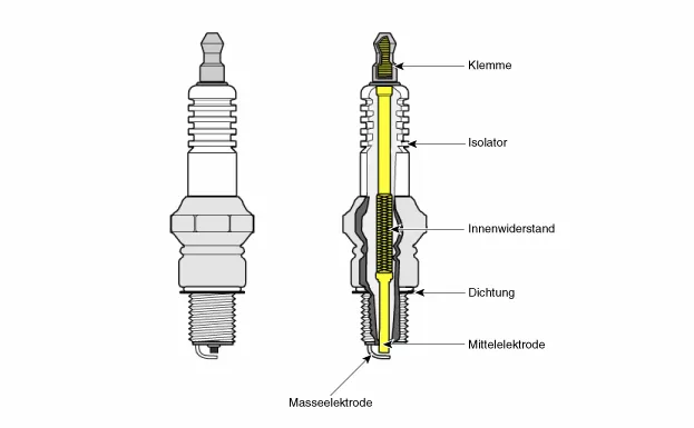 Die Zündkerze leitet elektrischen Strom über ein Zündsystem in den Brennraum eines Fahrzeugs mit Verbrennungsmotor und zündet dort das verdichtete Kraftstoff-/Luft-Gemisch mit Hilfe eines elektrischen Funkens, während gleichzeitig der Verbrennungsdruck im Motor aufrecht erhalten wird. Eine Zündkerze hat einen Mantel mit Metallgewinde, das über einen Porzellanisolator elektrisch von einer Mittelelektrode isoliert ist.