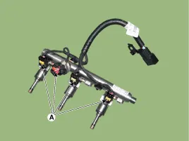 Einspritzventil- und Raildrucksensorsteckverbinder (A) abziehen.