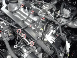 Befestigungsschrauben (A) lösen und dann Niederdruckkraftstoffleitung abtrennen. |
